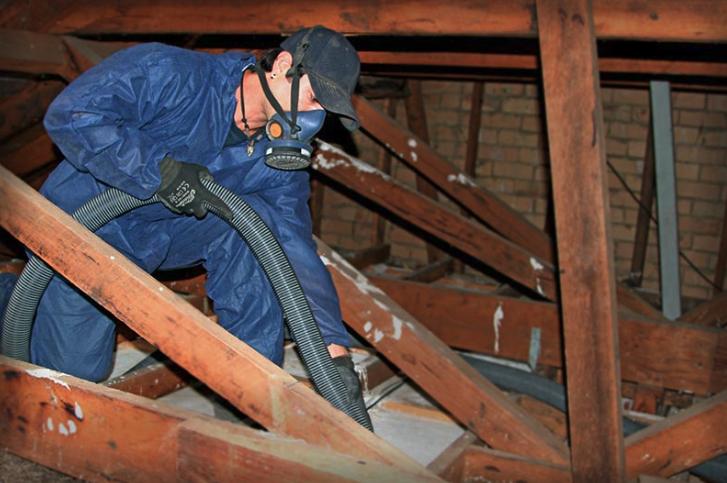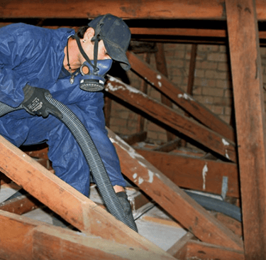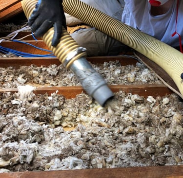 Old insulation is vacuumed and disposed over in line with government regulations.